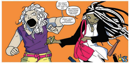 - Jetta trying to hand Roxy BRASS KNUCKLES (and revealing other weapons too) so they can go bust some heads.