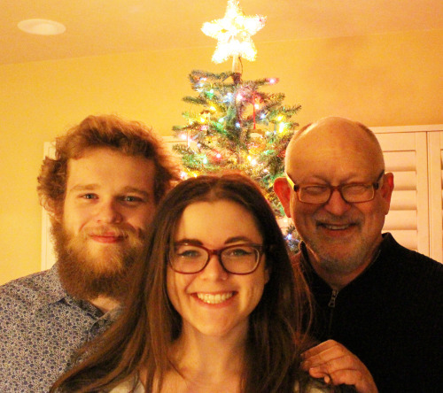 Here is a holiday picture of me and my men. That’s my brother, and that’s my father and that’s my face and the thing it does when it’s happy. And aren’t we all cute?