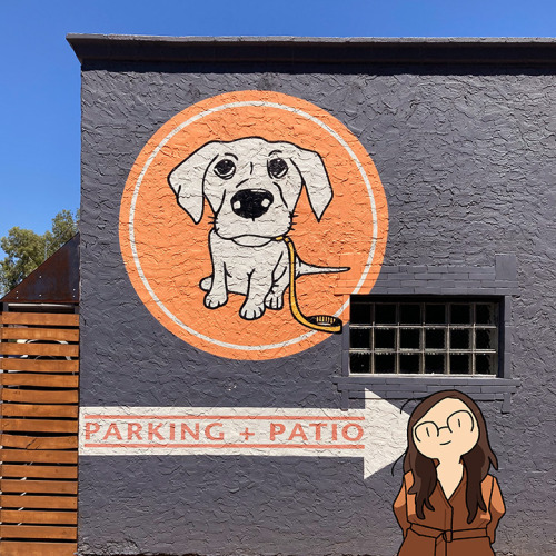 Description: An illustration of myself in front of SHORTLEASH HOT DOGS south facing wall. They got great donuts and you should eat them.