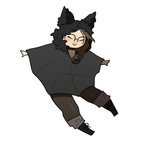 Description: An illustration of myself in my bat kigarumi, tights, ankle warmers, and black boots.