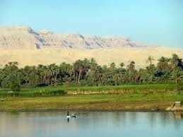 In general, the area is arid, but along the Nile, it is extremely fertile. The silt which flooded the plains annually comes from the White Nile which starts at the Great Lakes region of central Africa (Rwanda) and also the Blue Nile which begins at Lake Tana in Ethiopia. They meet in Sudan and form the Nile. Most of the fertile soil which is flushed through is brought up from the the Blue Nile.