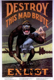 Earlier today I wrote down ideas for a blog. It was an impassioned plea for human morals in a world that is too often dictated by the needs of our institutions. But I find tonight to be a night where madness speaks, and so I am sharing images I have acquired while researching my novel in progress. Perhaps a glimpse into what we can permit ourselves to become and do will sate our appetite for insanity so that we can go back to building a more rational world. I begin with the propaganda and work my way to the reality of war.