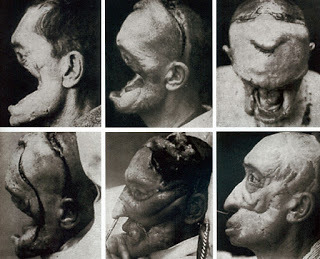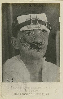 Doug did not immediately look at George, looking instead at the glasses sitting on the mantel. It was far more than the glasses that sat on the mantel, and at last Doug understood. They sat in front of the picture of the younger man who wore no glasses. When George had removed his glasses he removed with it a nose, an eye, and part of his cheek. Doug looked now at the man in front of him and saw something he could not understand. How could such damage be done to someone and still permit him to speak? Doug could not put the pieces of the puzzle together, could not see how such a thing could have been created from the remains of what once had been a human face. How could the war have taken it apart in such a fashion? What blueprint were the doctors who operated on him working from when they attempted to reassemble it?Doug stared without regard or awareness, unable to make sense of what it was he saw. Where before he could not seem to stare directly at the former soldier, now he could not look away.