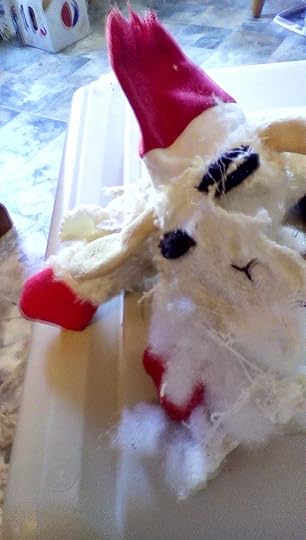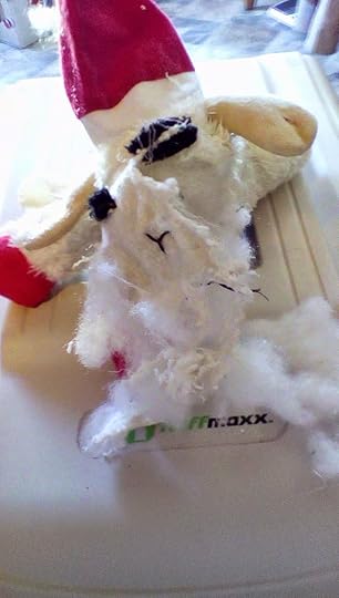 So badly mauled was poor Lamby that we would have had difficulty identifying her had it not been for the trademark Santa hat she was so fond of wearing.