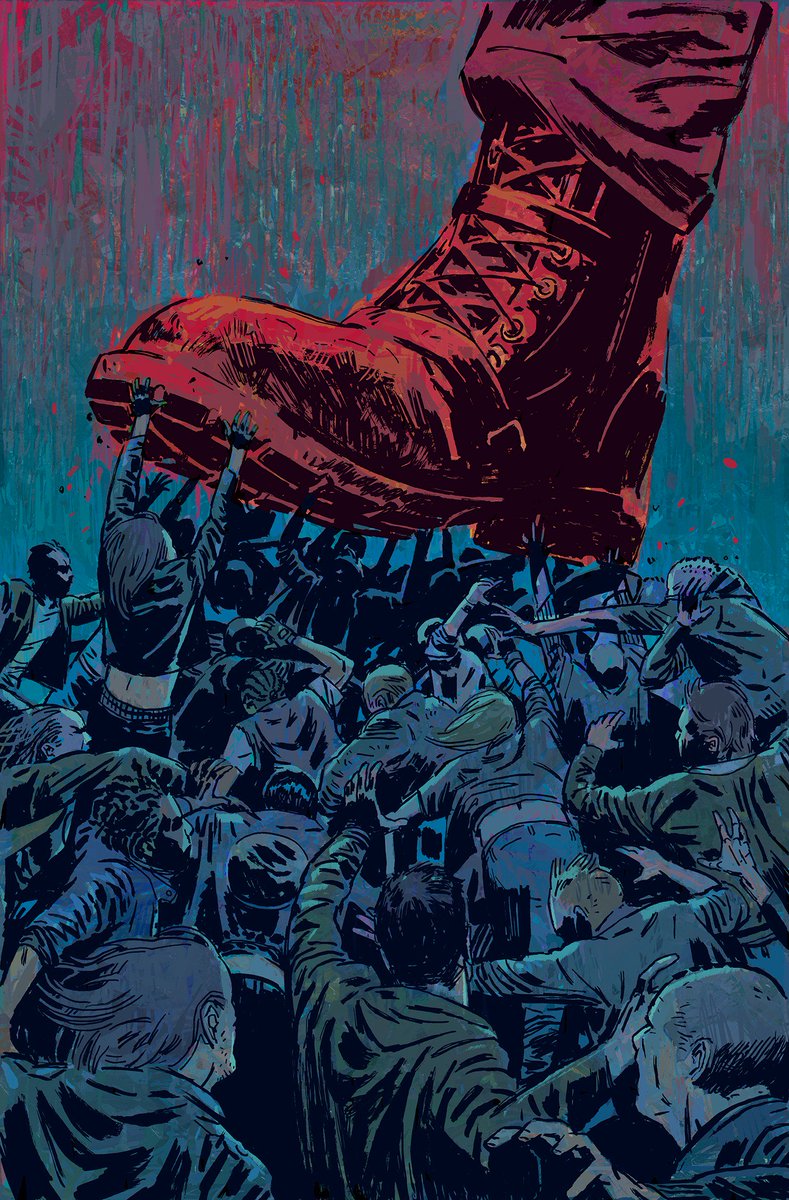 What interaction that took place at the tables was merely commentary of what was taking place on the screens. It was as though all of the information was sent funneling through screens until it was digested by the patrons. Like pigs at a trough, thought Dave, not knowing what it was they were consuming, nor caring why it was they were being fed. He found Johnny’s voice to be just one of many sources of information competing for his attention. Text scrolled across the televisions in front of him in layers, too quickly for him to process. And all the while the screens at the periphery of his sight were pumping out vast amounts of information and images, feeding his brain whether he wished them to or not.