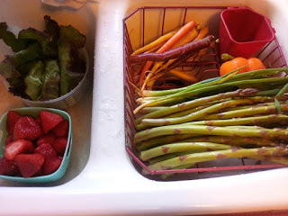 Two months ago, the first fruits and vegetables of summer seemed so very far away. And yet now my sink is full of the food we've acquired through our CSA and the local farmers' market.