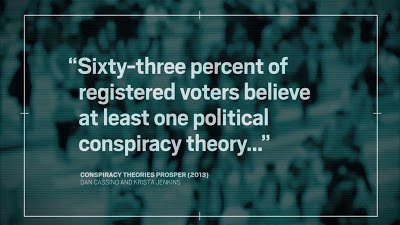 There are two equally dangerous reactions to conspiracy theories: 1. Ceasing to even consider the arguments behind an idea the moment the conspiracy label is applied and 2. the tendency to believe all of them are likely true once the evidence for one becomes overwhelming. A conspiracy theory is, after all, merely a theory that two or more people conspired for a purpose. People do that all the time. To call something a conspiracy theory should not carry with it negative connotations.