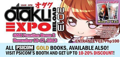 Hi guys!PSICOM Publishing Inc.andPinoy Jokes + Manga Artwill be selling books/artworks in Otaku Expo this Nov. 16-17 at SMX (Mall of Asia) PSICOM books will have 10% discounts. Lots of our PSICOM writers will donate their book sales to the victims of the typhoon Yolanda.
