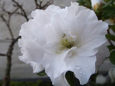 As I have always been a champion of dying houseplants, I took it home and began to cherish it. Turned out it was an azalea, and for several months there was no sign of improvement. A few new leaves and some that fell off. Not very encouraging.Then three weeks before Christmas, something strange started to happen. White buds appeared. In no time at all, the pathetic little branches were covered in beautiful, double white flowers. Unusual for an azalea, I discovered, they usually had single flowers and they never bloom at Christmas time.