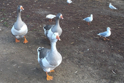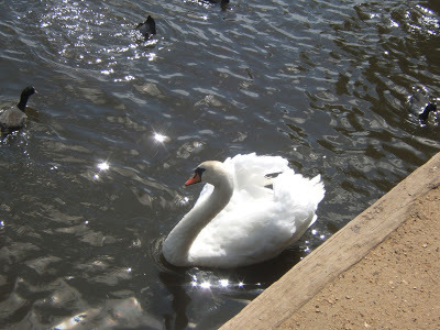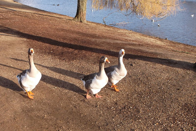 As I walked towards the water, three fat and angry geese were trying to pick a fight with the resident swans. Stupid really, as the swans are huge by comparison.