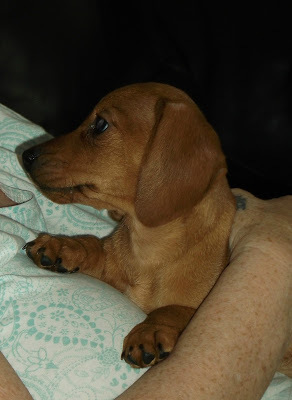 Not sure how I managed to do any work yesterday, as due to a family emergency, we volunteered to puppy sit.Maggie is a miniature dachshund and three months old. Cute as a button, but with more energy than the two of us combined. Although she has visited before, her human ‘mum’ was always with her, so we wondered how she would cope without her.