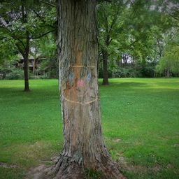 First, walk your yard, and find the best place to make a course. Rather than building Disc Golf Baskets, use trees as targets. Draw an "X" or a bullseye 4-5' high on each tree target. Place a mini-flag at the bottom of each tree to designate it as a "hole". Use a permanent marker to mark the flags from 1 to 18. Don't have flags, that's okay, just write the number of the hole directly on the tree.