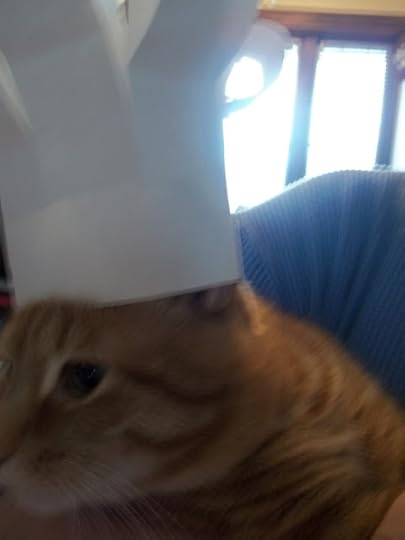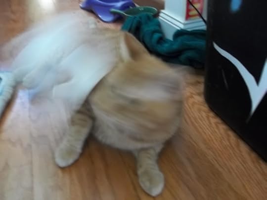 I cut ear holes so he couldn't squirm out as easily- fail. No animals were hurt in this post.
