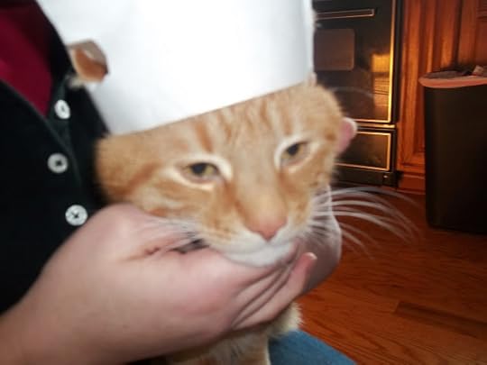 Wondering how to make a chef's hat? I suggest you make one for a child's costume and not for your cat. Your cat does not want to wear a hat. He doesn't want to wear it in a chair. He doesn't want to wear it over there. He doesn't want to wear it in the kitchen. No, I'm sorry, your cat doesn't think a hat is bitchin'. He doesn't want to wear a hat near the stair. Believe me, he doesn't want to wear a hat anywhere!