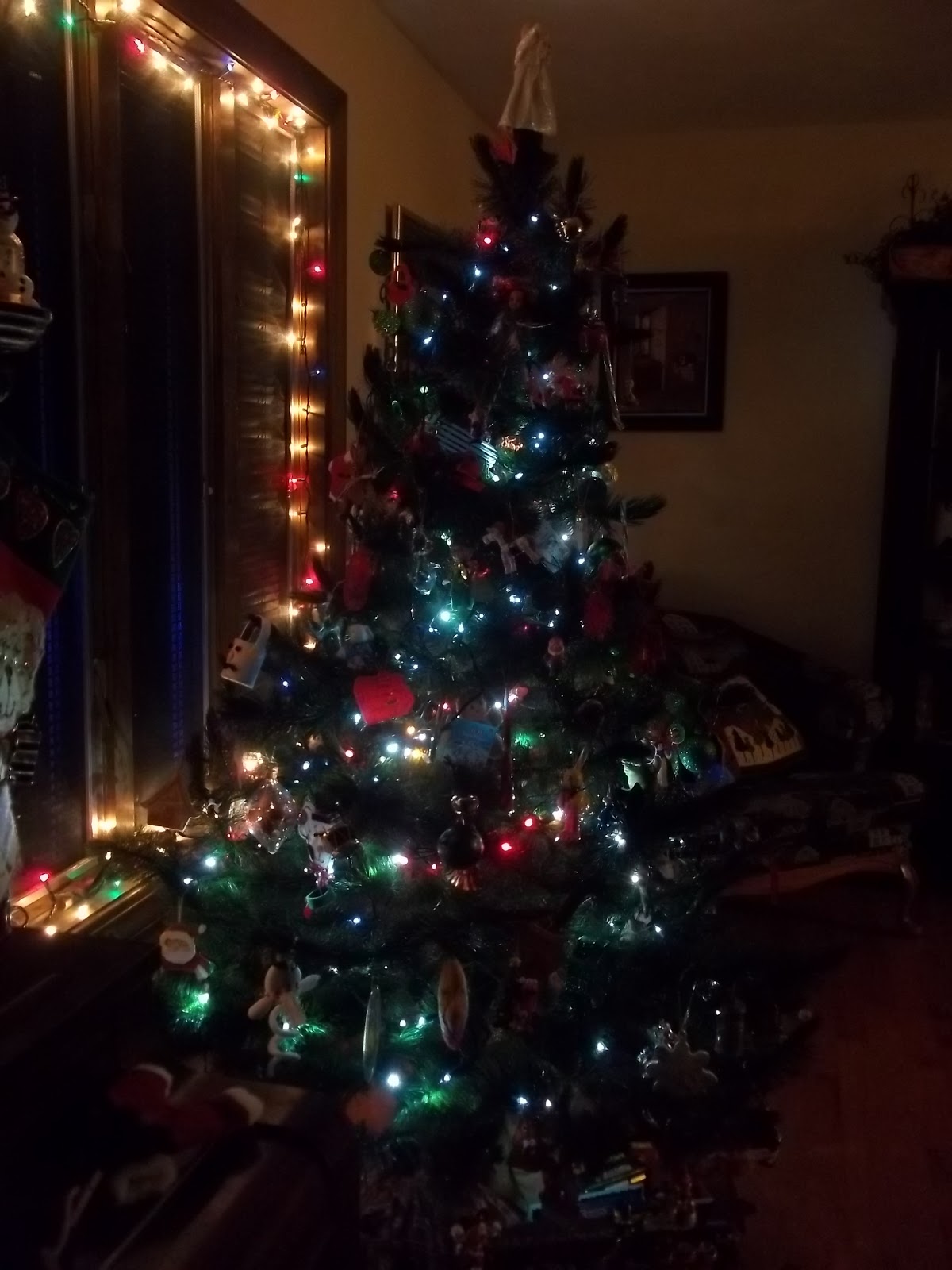 Ever since I can remember, we've had a cardinal near the top of our tree.