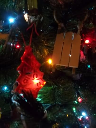 So, to honor the memory, I tied a ribbon through the top of our heirloom ornaments and hung them on our tree. The light reflects behind them with a beautiful red glow making the perfect decoration for the tree.