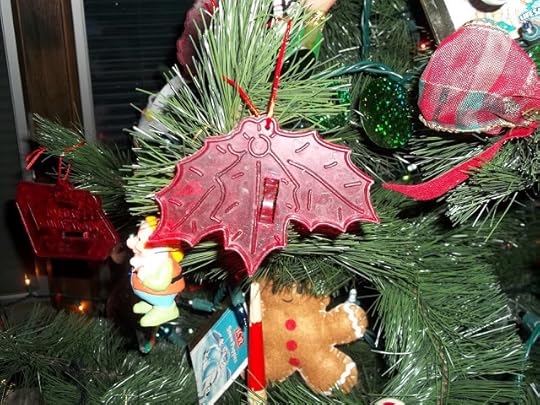 Red Cookie Cutter holly and "Merry Christmas" gift ornaments for tree decorations.