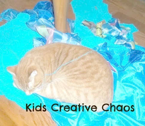 The cat enjoyed the tearing of fabric strips so much he needed a nap after playing with them.