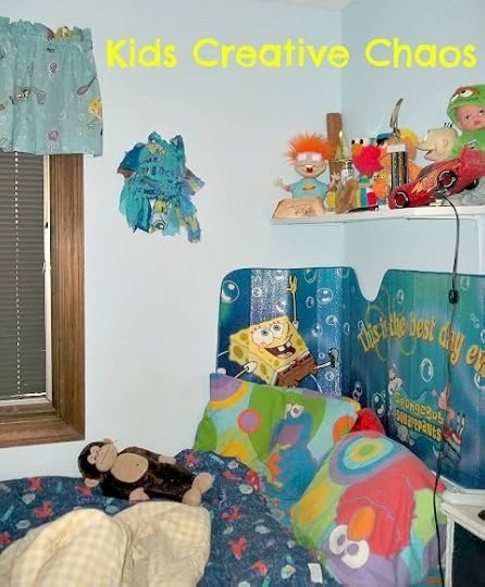 Jake loved the idea of using his toddler tent cover as scrap fabric for this project. We renewed an item that was dear to his heart. It had been ripped from rowdy play and was no good as a tent, but we saved it anyway in hopes to repair it or transform it into a pillow or some other creative endeavor. The Sponge Bob Fabric was the perfect accent for his room.