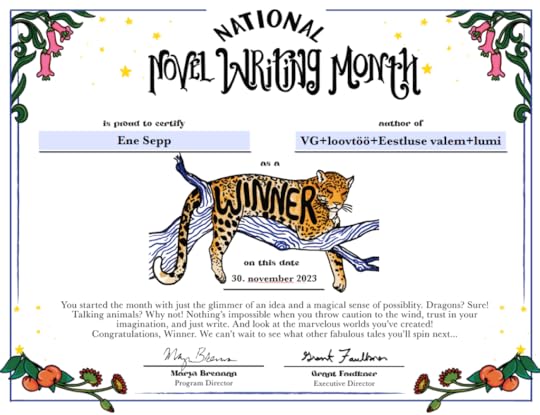 Alles ma soigusin siin oma postituses, et ma ei tea, kas ma saan selle aasta NaNoWriMo tehtud (ma tõesti arvasin, et see ei õnnestu) ning et kui mul poleks kümmet NaNot selja taga, oleksin ma pooleli jätnud (kah täiesti tõsi). Aga täna, kella kuue paiku õhtul, ületasin selle maagilise 50 000 sõna piiri nii et saan uhkusega vastu rinda taguda, et jess, üheteistkümnes aasta järjest olen ma kirjutanud novembrikuus 50 000 sõna!