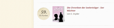 Und der 1. Band der "Die Chroniken der Seelenträger" ist in der Kategorie "Die schönsten Jugendbücher" ebenfalls auf Platz 59. Und das genau zum gleichen Zeitpunkt.