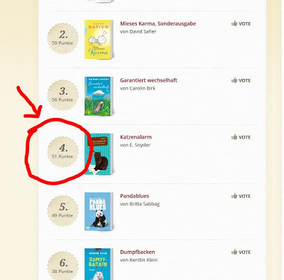 Gerade habe ich gesehen, dass meine beiden Bücher "Katzenalarm" und "Die Chroniken der Seelenträger" sich bei Lovelybooks in diversen Ranglisten platziert haben.