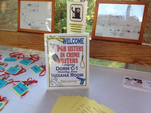 Last weekend, I went to my annual writing retreat with my fellow Sisters in Crime. It was my third retreat and, as always, great fun. Our weekend instructor was Tim Esaias, and he provided not only tons of useful information, but made me laugh so hard Saturday night that my sides hurt. And he let me help with an impromptu self-defense demo Sunday morning, which is always fun.