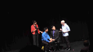 The couple being grilledIn the next scene it is revealed Adrian and Jacob have other issues in their relationship. While Jacob loves Adrian, he doesn’t understand his husband’s pain. Adrian does not want the microchip implant and feels this is inhuman. He has a point. He works, pays taxes, and has made a home in America. Jacob, on the other hand, is less than supportive. While he loves his husband, he wants him to get the implant so they can be together and won’t be deported. However, in his quest to make their life together he does not understand why Adrian objects. Then it is revealed Adrian feels like an outsider due to his coming to America as an immigrant. This can be seen when Adrian invites Jacob to meet a friend of his from Singapore. Jacob explains that he “cannot understand” Adrian’s friends from Singapore by the way they talk. Adrian points out Jacob understands him, and then corrects Adrian for saying Ikea wrong. Despite Jacob’s devotion, there is a serious disconnect between the two men. It is revealed during a dinner with friends Jacob and a Korean American girl knew the theme song to an American TV show, and Adrian did not. While Jacob does care about his husband, it is clear there is tension in the relationship because he does not identify. This is when Adrian first proposes to Jacob they move back to Singapore. Jacob is horrified. Adrian then gives a heart wrenching monologue about coming to America and feeling apart from as opposed to a part of. He explains that because he was from Singapore, he was the only Asian like himself. Adrian tells a story about his first day of class and a Vietnamese girl, who he explains he is still friends with asked him, “What are you?” He says very poignantly and matter of factly, “I am a person.” This is a testament to how America, despite being the country many want to flock to, is closed minded, sheltered, and at times bigoted the way it labels people. As a nation, most unfortunately, America has a label for someone or something not white and male. This has been an isolating experience for immigrants over the years, and it is captured masterfully during this scene. That is when Adrian comes up with a solution, he is moving back to Singapore. In the next scene Adrian is having lunch with his friend Dawn from Singapore, brilliantly portrayed by Shubhara Prakash. In this scene, Prakash steals the show distinguishing herself from the ensemble and shows promise as an actress, and as a theatre fan I cannot wait to see where she goes next. She is funny, on the mark, and brutally honest as she shoots down Adrian’s delusions of a better life in his home country. Dawn explains that while Adrian would always be welcome in Singapore, he would have to stay in the closet because being homosexual is not accepted in that culture. This creates more tension for the viewers. Yes, while Adrian is experiencing homophobia, racism, and xenophobia in America, he is more free to be who he is. On the other hand, if he returned to Singapore, he would have to live a lie. So he decides to get the microchip implanted. This is after pressure mounts from Jacob and his mother who tells him a disturbing yet on the mark story about conformity. Going to a free clinic, Adrian sits next to a blonde girl named Nadine (Lauren Gralton) who announces she is there for her fourth abortion. Funny and cheeky as the dumb blonde, the character is also appropriate for an agit prop piece as she serves as a message that birth control should be more readily available. At first Adrian is horrified as this young woman violates his psyche with disgusting jokes and comments, but then mentions she is protesting the microchip operations with her friends in DC. Adrian’s ears begin to perk up. Now he has an option, the option that every American dreams of, for their voice to be heard. The next scene is Adrian getting ready for The Procedure. The Doctor (Richard Glucksberg) is frightening, almost evocative of A Clockwork Orange. He explains that they must get Adrian ready for the micropchip implant also known as the “The Procedure.” While the doctor gets ready, Adrian has a disturbing dream sequence and decides that he cannot go through with the operation despite what it will cost him. He now knows having his voice heard is no longer an option, it is the thing he must do in order to be heard. It is what is necessary to say something is wrong. Adrian and Nadine go to Washington in order to protest “The Procedure.” However, the protest fails as both Nadine and Adrian are arrested. Upset, Jacob goes to the jail where Adrian is being held. Because of his immigration status, he is facing the threat of deportation. During his encounter with Jacob, Adrian, who began the play as clean cut, is now defiant. He informs his husband that the charges are “trumped up.” Due to his status as an immigrant, Adrian is facing deportation. However, Feldman (Richard Glucksberg) informs him that if he gets the implant, he will not be deported and they can fight the charges. Adrian is indignant, however Jacob, despite being distant at times from his husband, does not want to lose the one man he truly loves.This is followed by a short montage of everyone speaking various messages from the play whether they be his mother, the vignette actors, Jacob, his friend from Singapore and all other characters. That is when Adrian is defeated. The last scene of the play, in an emotional defeat, shows Adrian with a patch over his right eye. Adrian has gotten “The Procedure.” Adrian has sold out. This experience is a showcase to the unfortunate allegory that so many immigrants are forced to endure terrible hardships such as these in order to make it in America. A vision like this shows the American dream has a perverse darkside.Lastly, I would like to give a special attention to Sonia Nam, who’s attention to detail as an assistant director was on the mark. Each scene and lighting as well as s