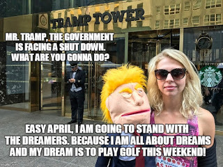 This week's family member being spotlighted is Kimmie. I met her on the protest trail. She also has a role in The Lady and President Tramp. Not only is she a radical darling with her rainbow hair, but she is an audience favorite. I just wish Kimmie wasn't so.......well.......Kimmie