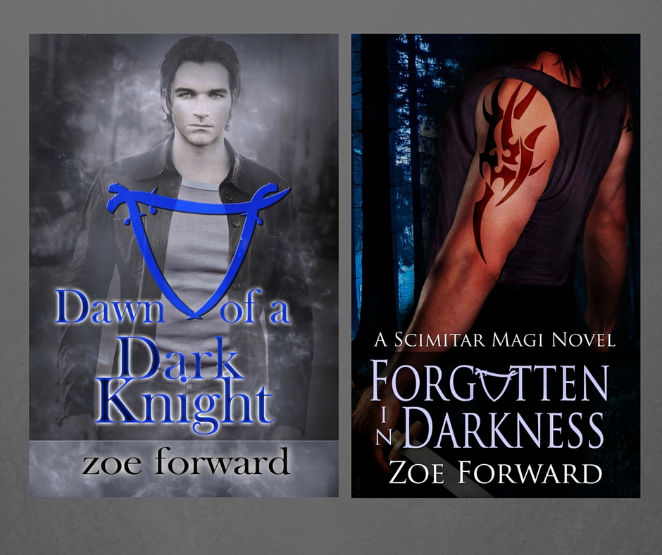 Here's what's up for grabs: One winner to get a paperback copy of Dawn of a Dark Knight and another winner to get a copy of Forgotten In Darkness. Both fun paranormal romances. Both signed, of course.