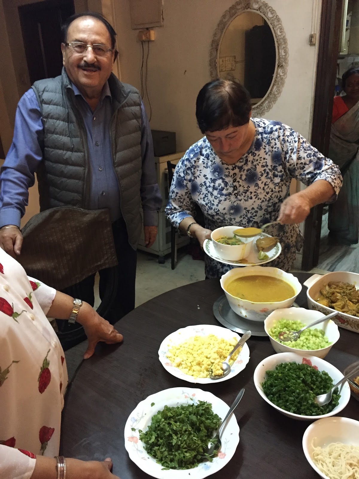 Our home hosts in Kolkata, the lovely Dawars, enjoyed giving us delicious local Indian food in the local regional recipes. I still make their carrot 'porridge' for breakfast.
