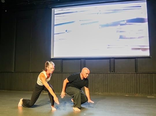 Almost like birds in a strange formation, they flocked. You thought they might crash into one another at times, but they never did, even as the accompanying instruments in the music of François Houle’s “Guilemette” threatened to tumble and spill. Almost like airplanes, they buzzed around each other, in appreciation, but knowing they could never touch for the danger of destroying the flight. Almost like tightrope walkers, they used their arms to keep their balance, but also to lean, off kilter, spinning away and then back again toward each other.