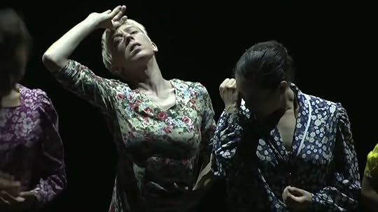 These were largely poses of pain—the program notes describe a mysterious sorrow the women bear, a “grief” they seek to transform into “a medium of power and revival.” There was a hint of religious ecstasy to them as well, however. Most noticeable were unnoticeable forces at work. Someone had put the screws to these dancers. They expressed a sense of reacting to something coming at them: perhaps the world, patriarchy, racism, exploitation, alienation, suffering. Nonetheless, there was also a sense of reaction to something within: self-doubts, nagging suspicions, worried insecurities. These both were grabbed at, nabbed, clutched, assessed, and then usually swatted away.
