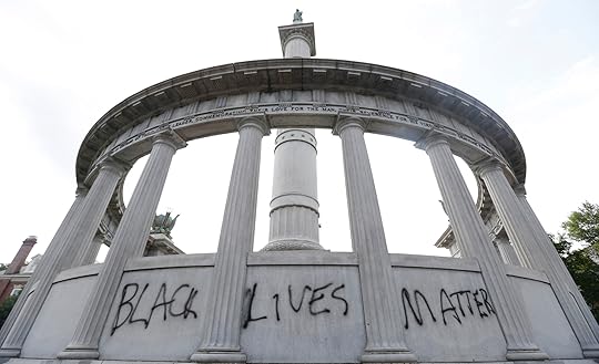 Jefferson Davis Memorial, Monument Avenue, Charlottesville, Virginia, with Vindicatrix statue and Black Lives Matter graffiti, 2020. Fannie Barrier Williams, Brockport resident and Black antiracist, feminist activist, ca. 1880.