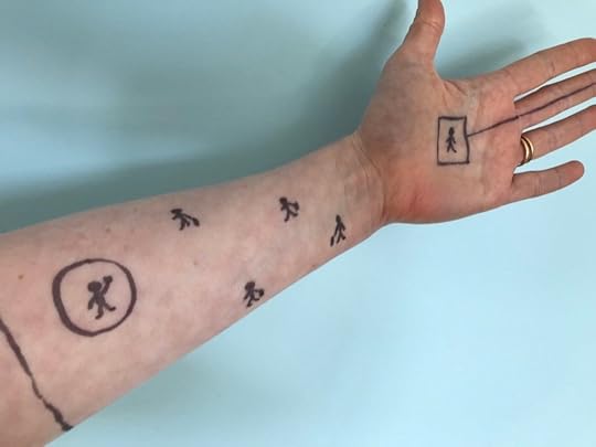 Yet there is a stubbornness to the piece, so that even with the pandemic’s intensification of absence, maybe even because of it, a spirit of presence springs forth. Forced to interact beyond even arm’s length, we are drawn in. Zaraa appears in the video box, with a background that becomes a kind of placeless digital stage. We are all just bits and bytes, pixels and streams, separated. Nothing feels quite real. But then, as in person, what starts to matter most is that one is involved, one pays attention. Zaraa instructs the viewer to draw on their own arm as he explains his story, so that we as audience members wind up quite literally inscribing on our own skin a refugee’s sense of flight, loss, and fragmentation. We draw for him, on ourselves. We are a proxy, and we become proxy to the tale. Ostensibly we are safely in front of our screens at home, but the boundaries of body and screen, skin and ink, self and other, location and dislocation, begin to at once dissolve and take shape, disappear and then come profoundly into view.