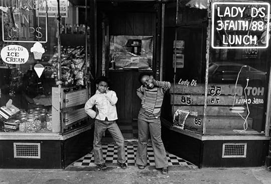 But then, on the next page of the catalog, we see some of Bey’s very first photos. They are from 1964 and feature portraits of black and white classmates together on the playground of Public School 131 in Jamaica, Queens. The boys stand proudly, awkwardly, beautifully. They sit, thumbing through books (I want them to be comic books but they might not be). They are friends. They seem glad Bey is taking their photos. For he isn’t taking anything from them, he’s giving them something, a gift of seeing we get to see too.