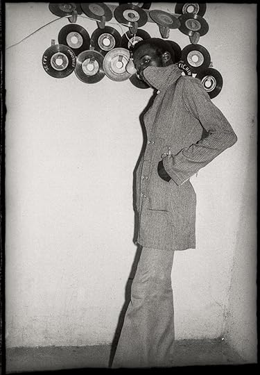 In Sidibé’s photos, people pose. “When I bought my first camera,” he explained to Brigitte Ollier for the exhibit and catalog Mali Twist, “there was a mirror attached to it.” This was because, Sidibé explained, “It was said that someone who looked at himself in the mirror became a genie. So that supernatural being, in order to demonstrate his stature, looked himself over in front of the others. He made the best of himself. Spruced himself up….” In Sidibé’s small studio and sometimes in the youth clubs, dancehalls, and outdoor settings of postcolonial Bamako, they often proudly display objects: a motorcycle, a soul or rock recording from the West, a turntable, boxing gloves, a guitar, a purse. Even when dancing they seem aware of the camera’s presence, that someone is looking at them, checking them out. They pose dressed to the nines: in the most amazing pair of flares you’ve ever seen, peering over a cool sunglasses, hats tilted just right, wearing a shirt, or not wearing one at all. They pose themselves for the camera, but they also pose the idea, often with their eyes, that they are not just there to be seen for the camera, but also beyond the camera, through the camera. They look out at the world through the lens. They look out at the future in the lens.