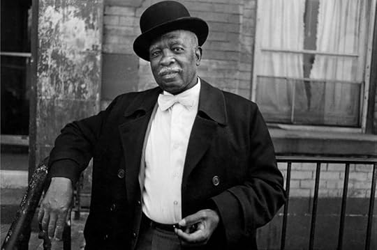In other images by Harris, one person might eye him back as he gets his shot, but everyone else seems unaware. Billy Eckstine, the jazz bandleader, looks up skeptically at Harris, but next to him Lucky Thompson, Dizzy Gillespie, and Charlie Parker are lost in performance, on the cusp of inventing bebop. In another photo, Joe Lewis looks the camera squarely in the eye, but Cab Calloway gazes at Lewis slyly, Woogie Harris looks off in the distance, past the camera, and so does John Henry Lewis. In a photo of boy scouts on a street corner, everyone looks intently down at their sketchpads while they draw, but one boy looks up askance, dubiously, at his instructor. While there are certainly a number of portraits in which subjects look right back at Harris, he most of all specialized in being on the scene without being at the center of it (hence his nickname, “One Shot”). The way people are looking in the moment he snaps his photos is as important as the way they look. He captured Pittsburgh citizens in action. They don’t gaze at the camera with self-aware intensity most of the time. Rather they look at each other or are just caught up in the history Harris captured, at the scene of which they were all playing a part.