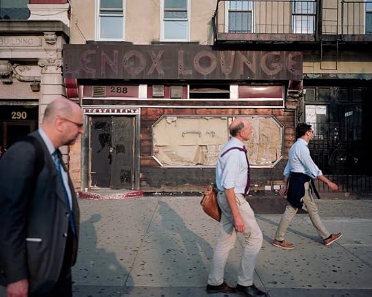 The only edge comes in his Harlem Redux photos, a sequel to Bey’s 1970s series Harlem, USA. In these photos, taken in 2016, we see the gentrification of Harlem. White business men marching ominously by the shuttered Lenox Lounge, its letters fading to black. One year later, the building would be demolished. A set of ghostly trench coats and jackets hang from a fence, hats with no heads lining its top, set against blue tarp hiding the pit of new construction behind it. You start to worry that the world has possibly overrun Bey’s sensitivity.