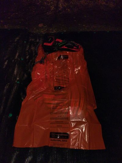 It was bloody cold. For some not-very-clever reason, I'd chosen a space on a gentle slope - bad idea. The emergency bags we'd been given were very slippery on the tarp and I kept sliding down the hill.Did I mention it was cold? No matter in which position I tried to get some rest, there was always one body part turning into ice. I should say at this point that I was wearing 3 pairs of trousers, 4 shirts, a fleece jacket, a coat, two pairs of socks, gloves, a hat (on top of two hoodies) and a scarf. Plus a sleeping back and a sleeping bag liner.