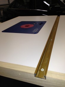 The top is dual layer 3/4″ MDF, and a laminated Formica top. I routed the recess for the Kreg lift, and the tool track, and trimmed the edges in some spare poplar I had lying around.