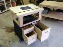 I recently started to recommission my shop, and it finally came time to get a router table back in service. After searching around for ideas, I decided to build a table inspired by a video series from FineWoodworking. My table is very similar to the series, but with my own dimensions, drawer configuration, and table support construction.