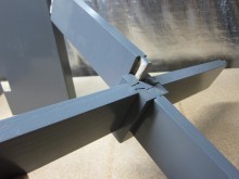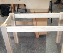 The table top is 3 planks of Ash biscuit-joined together. The frame is mortise and tenon. I cut 2 mortises and 2 tenons by hand and then 2 mortises on the mortiser and 2 tenons on the table saw. This allowed me to experience both hand tool and power tool methods. All joints fitted tight in the end!