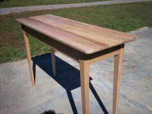 I started putting this shop together just to build various things for the yard and garden. I mostly had arbors and benches in mind. I had a neighbor ask me to build an arbor for their climbing rose bushes and from there, things just started getting out of hand! Friends and neighbors started putting in requests and the next thing I knew, I had a small business going… requiring considerably more tools than when building arbors. Now, I’m building furniture…60% of which is made from reclaimed barns that I re-mill and re-purpose! I try not to work around the natural worm holes or bee holes, and do what I can to incorporate them into the finished product! I have a few pictures here, but I do a lot of small stuff like: one sided towel racks, cutting boards and racks to hold them, and wall-mount coat hangers. I use mixed antique woods using poplar and cherry.