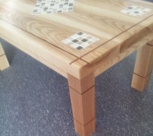 This design was made to provide a built-in coasters for drinks or plates. It is a common household problem having cups mark, burn and scratch the wood. Now with the tiles you can easily rest your hot cup of coffee, tea etc. on it or you can place hot plates or any cutlery on the tiled centre piece.