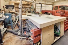 During nearly all stages of a project, the assembly table is used for holding various parts and pieces. It makes sense then to have the assembly space located somewhere near the center of the shop. This way, your project parts are never more than a few steps away.