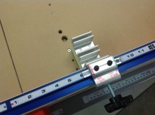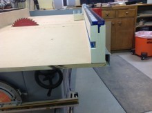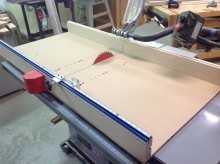 There are two safety features. The first is a rear block of maple painted red to save my fingers when the blade extends the rear of the sled. The second is an added through bolt that hits against a bolt that I installed on the table saw (I drilled and tapped a hole). This insures the sled can not move any further forward, therefore the blade will not protrude any further in the rear of the sled. Below is a video I made that further explains how to build this, along with tips on squaring the sled fence to the saw blade, thus ensuring perfect 90 degree cuts.