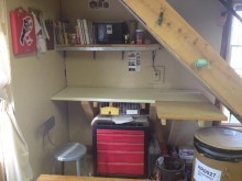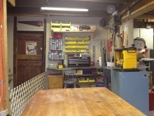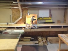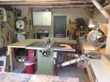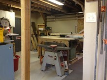 I have an underpowered dust collection system (with Thien separator) that I need to upgrade at some point, cabinet table saw, 12′long miter station, drill press, band saw, 6″ jointer, 12″ planer, router table, and other standard construction tools (e.g., nailers, circular saws, etc.). I have yet to build up my hand tool collection, but I just want to build stuff right now and will return to outfitting the shop in the future.