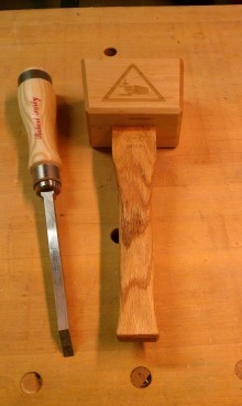 I have been using a turned mallet that I made several years ago out of some laminated pieces of red oak. I still have it and it serves quite well to this day, although a chunk of it finally went flying a few weeks ago.