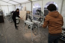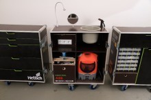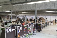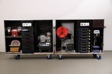 Within the architecture master program of the TU Delft in The Netherlands, we have the 1st semester master course called the Bucky Lab. Wihin this course we teach the students how to develop facade related prototypes from sketch to working prototype. Due to the fact that we are using the workshop for only 2 weeks per semester, we had to close our permanent workshop. Our idea of a mobile workshop was born. Stored in the basement when not in use in 5 big flight cases, the mobile workshop can be placed anywhere we need our tools. In the summertime we rent a tent to set up the workshop—in the winter we rent an old industrial hall.